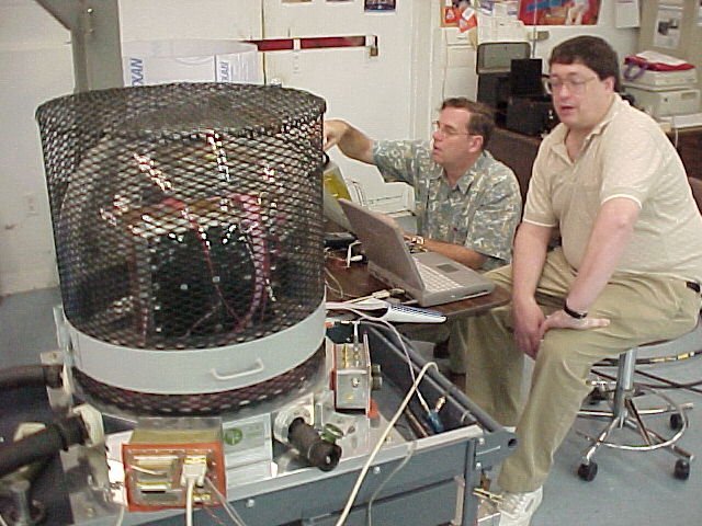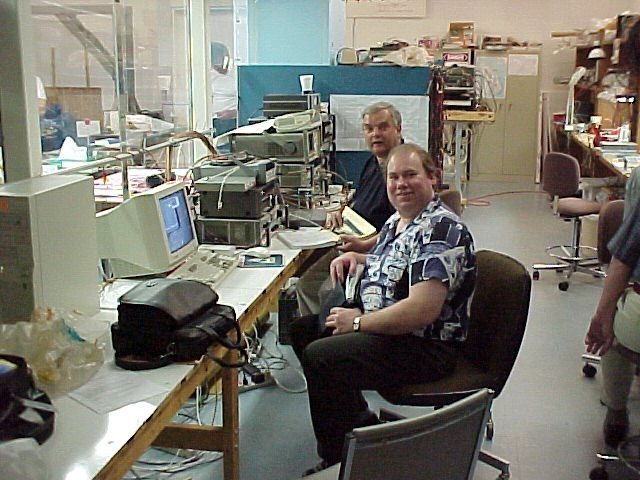 - Mirek and Peter take a break at the command station next to the RF test quarters (80k)